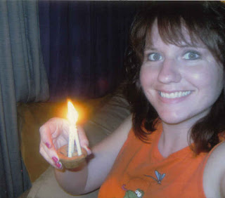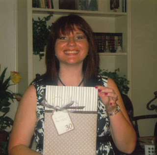 One of my birthday gifts was an adorable sticker set for scrapping. Five or six pages, filled with words that look like they’re written on labels…perfect for pages and cards. Today I made the opening page to my birthday scrapbook. I used my biggest alphabet stamps to write out the date and event, and then I pilfered through the stickers, looking for words that I thought described me in a nutshell. (No, nutshell nor any other word resembling it was used.) One word I did find to fit on my descriptor page was