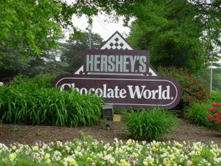 Once we found our way back to the right road…we ventured forth, and ten hours and four states later, we arrived in Hershey, Pennsylvania. Land of the chocolate and home of the sweet. We spent a couple of days there, touring gorgeous gardens, sampling the healthy antioxidant loaded chocolate treats, getting lost (thanks to the lousy local map provided at the hotel…though not published by the hotel) and making our very own waffles at the hotel breakfast bar. We took a combined total of almost 300 pictures, laughed at the road signs littering the state of Pennsylvania, learned we do not look good in hairnets, dodged the massive herds of field trip participants, and developed an idea for the new and improved car horn, which should have various sounds for various situations.