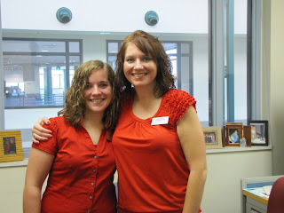 Also on Monday, our lovely student worker, Rachel, and I matched. So of course - picture opp! Isn't she darling?