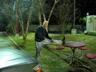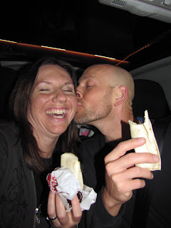 About quarter til 1 in the morning (having been on the road for almost 12 hours at that point) we stopped at a rest stop in who-knows-where Georgia for a little shut eye. I took a blanket and rested it against the door and leaned over to go to sleep. Ryan put a pillow against my shoulder and leaned over to sleep. He was out in approximately .000000000008 seconds. About an hour later, I FINALLY fell asleep only to awaken immediately to a school bus load of hooligans (sorry - but at 2 a.m. a busload of people waking me up at a rest stop deserve the term hooligans) awakened me as they noisily disembarked and headed to the restroom.