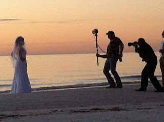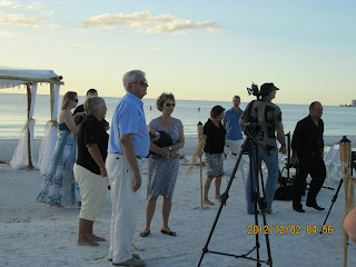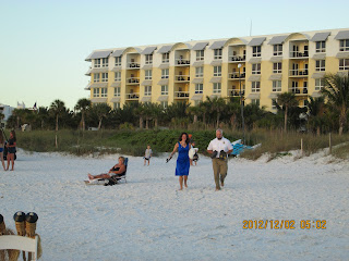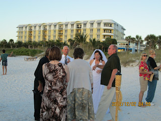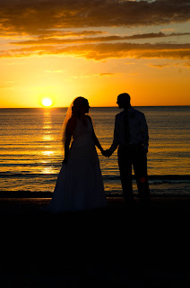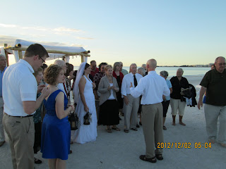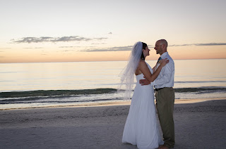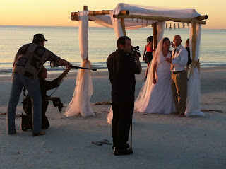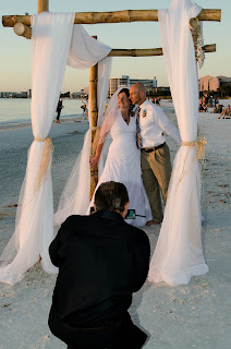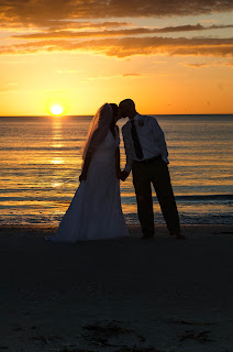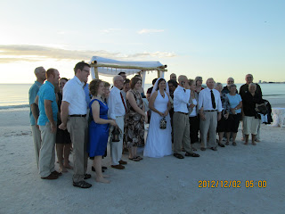 As you know, the wedding was at sunset, and the professional photographer and our videographer wanted to get some pictures of the families, the wedding party, and of the two of us together as the sun was going down. Much later, I realized it was a blessing that the two songs we lost out of the wedding didn't work...because it bought us about 8 more minutes to have sunset pictures!