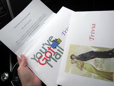 I tried to cheer us up by pulling out another round of travel games. First up? Movie trivia! Ryan answered questions about How to Lose a Guy in 10 Days and I answered questions about You've Got Mail. We won't talk about who won. {Cause it wasn't me.}
