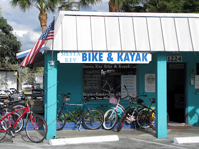We rode our bike down to the Siesta Key Village {about 3 miles away from our hotel} and had a late lunch/early dinner together. Then we took a tour of town, where we found this:
