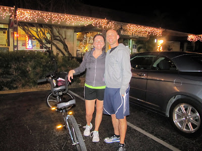 On the way home, we decided to ride the bike on the beach. The bike didn't have reflectors and our clothing wasn't bright, so we hated to be on the main road. But let me tell you about riding on the beach after dark.