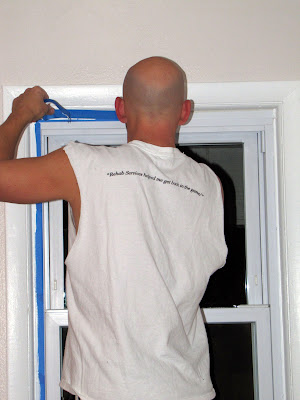 We spent the evening un-taping the living room and doing touch up work on the trim and walls. Isn't he so handsome?? :)