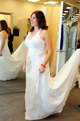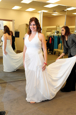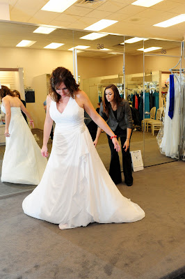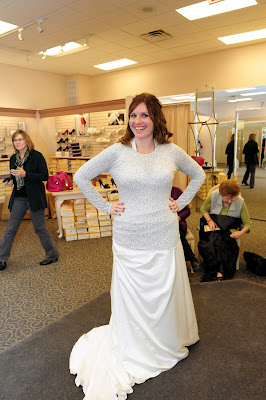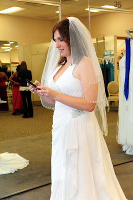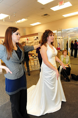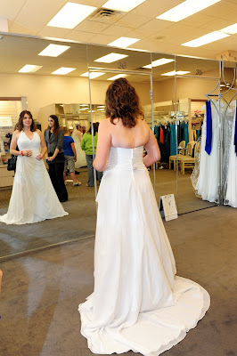 I went up to the front to pay for the dress and while there, I heard great clapping and cheering from the back. My entourage had turned their attention to another bride...and they were voting on her dress. Such team players, they were.