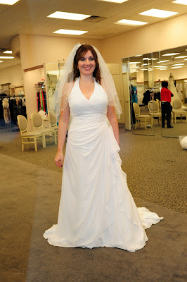 I knew it then. That was my dress. It was also my first time to ever be in a halter top...but it seemed okay. {Did not want to be one of those brides that caused onlookers to say oh....why didn't someone TELL HER not to wear that????}