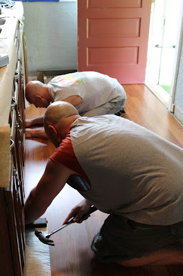 * And yesterday's exciting news...we now have new floors in the kitchen!! Ryan and Adam worked so hard to install them and I worked hard taking pictures of the process! Can't even begin to tell you how much this changes the look of the entire room. I can't wait to show you the after pictures!