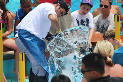 It was a fish! The ice block was 600 pounds when he started and 400 pounds when he finished!
