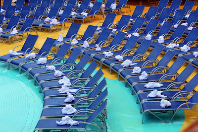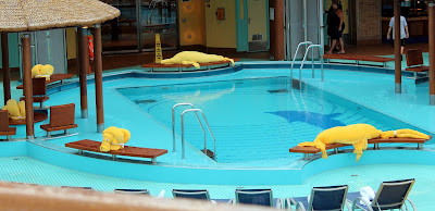 We made our way toward the breakfast buffet and found some rather large towel animals lounging by the pool!