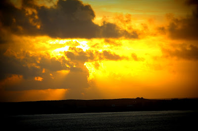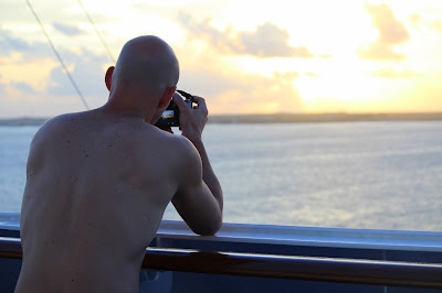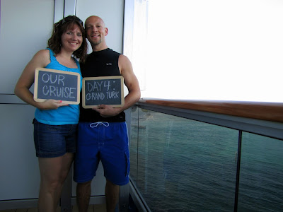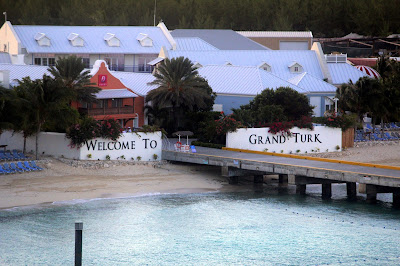 We were pulling into Grand Turk on Wednesday morning just as the sun came up. Though it is, I'm sure, counterproductive to see a sunrise on vacation, we made our way down the hall to the little deck out on the front of the ship...and welcomed ourselves to port: