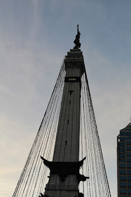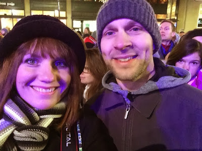 Because of how the calendar falls...last year Thanksgiving was a whole week before our wedding. This year, Thanksgiving and our anniversary were the same weekend. And so...that meant the lighting of the giant Christmas tree on Monument Circle in Indianapolis fell on the same day as our arrival. And since we just happened to be staying in a hotel on the circle, it seemed only logical to attend!!