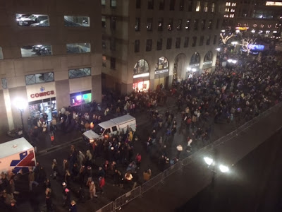 Check out the crowds leaving the circle, as seen from our hotel window: