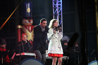 We were right by the stage, right there in the front - with the perfect shot of the ginormous light switch they flip to light the tree!