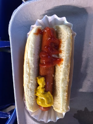 Ryan and I shared a hot dog and bag of popcorn...so this was our his n hers hot dog. LOL!! Ketchup is my half. Mustard is his half. A marriage made in hot dog heaven.