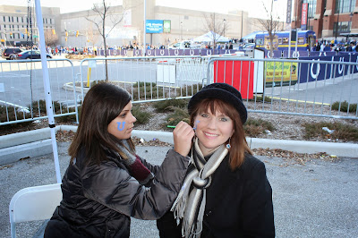 We got there JUST in the nick of time to get our faces painted prior to the game. We were the last two they let into line before they shut it down!