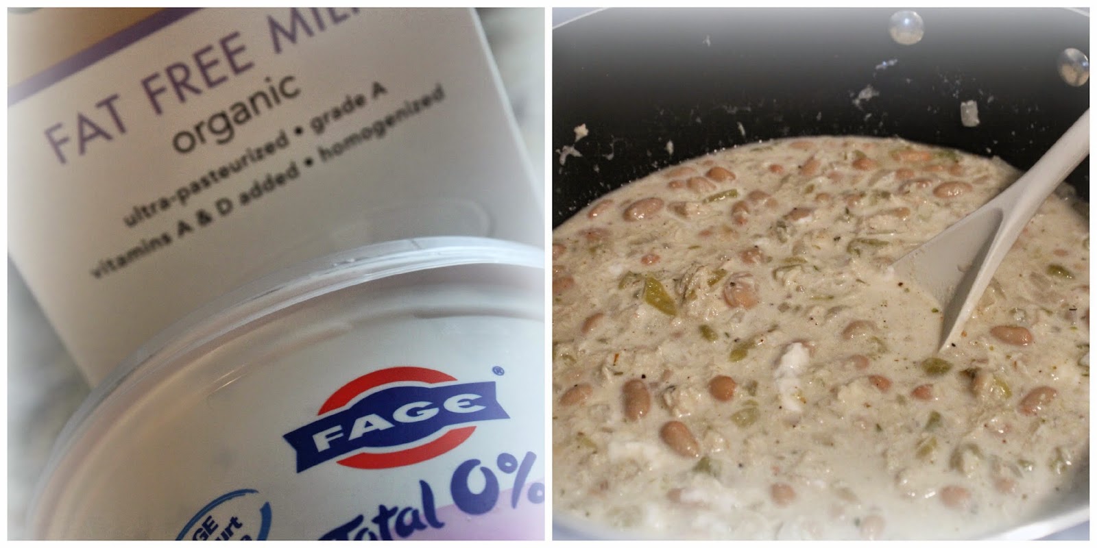 * The original recipe called for heavy cream and sour cream, but I have replaced those with low-fat or fat-free milk and Greek yogurt, and we think it tastes delicious.