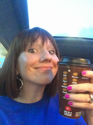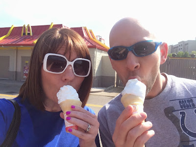 We didn't linger long at dinner, so a little while after getting back on the road, we decided we wanted coffee. I did a search for the nearest one and found it...as we passed the exit. And apparently, at that point, we were in a Starbucks drought. So we stopped at a McDonald's instead. As we pulled up, so did two tour buses, and out poured DOZENS of military guys. Getting coffee just got comical at that point!