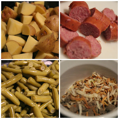 * We always buy the turkey sausage, because it's one thing we can do to attempt to make this a little bit healthier. We like it just as much as regular smoked sausage, and it doesn't have nearly the grease to contend with, which we also love.