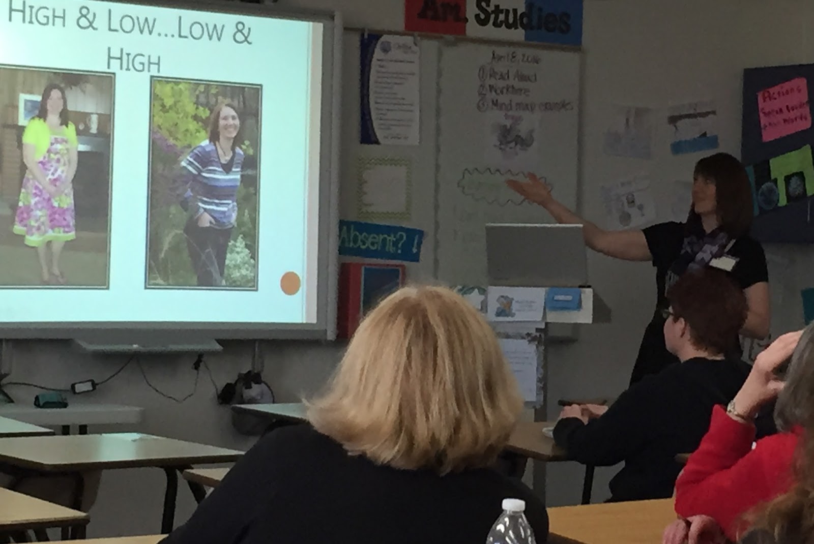 I gave the same presentation twice: once in the morning and once in the afternoon. Ryan took some pictures for me. I cannot talk without my hands as you'll see.